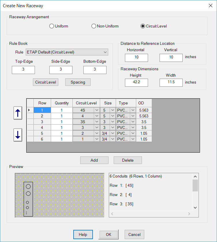 The purpose for the circuit level rules is to allow the user to create the following rules for an underground raceway system setup: