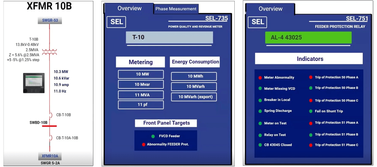 Operators were then able to use ETAP eSCADA templates and dashboards to customize their HMIs. In addition to the standard alarms provided in other SCADA systems, the ETAP system provides continuous electrical system analysis on the entire network, including non-monitored components, digitally. This increased the visibility of their entire electrical system, providing greater reliability and situational awareness of their operations. The power management system generates analytical alarms for every component in the network without any programming or extra configuration. ETAP eSCADA provides monitoring of metering and protection equipment for various manufacturer equipment. This result is a model-driven electrical SCADA with real time visualization through an intelligent graphical user interface with web-based dashboards and one-line diagram monitoring. As well, user-definable reporting for energy efficiency monitoring and KPI management were also defined and implemented.