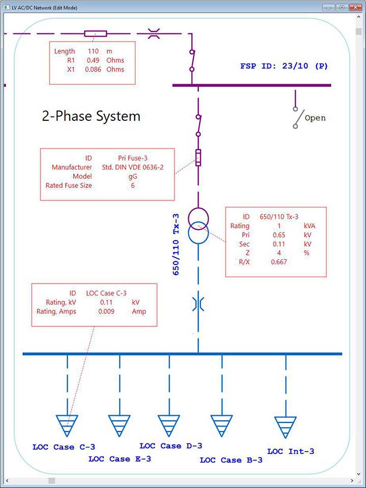 Create and manage single-line drawing schematic for 3-phase and 1-phase AC / DC, and grounding / earthling types  networks with unlimited buses, distribution panel boards and other elements including detailed instrumentation.