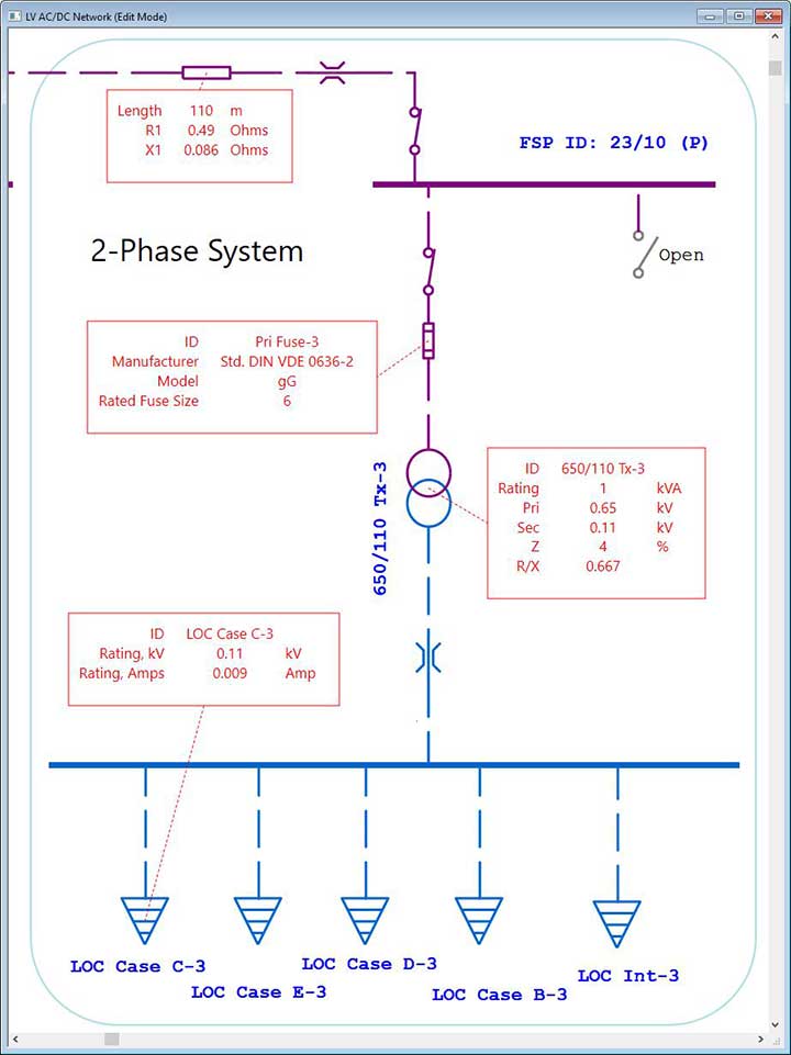 Showing properties and results from different studies within the same one-line diagram. Use intelligent text box and hyperlink to include additional customized data to your single-line diagram.