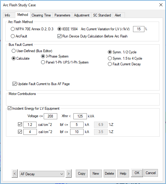El software de análisis de arco eléctrico ETAP facilita la especificación de datos de análisis de arco eléctrico que deben aplicarse a equipos de bajo voltaje, como motores y transformadores, basados en NFPA 70E 2009 e IEEE 1584.