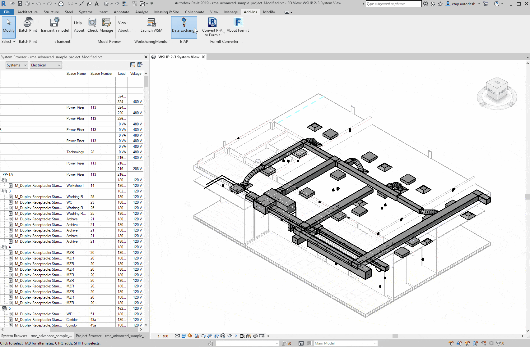 The ETAP-Revit data exchange utility simplifies the electrical design process by utilizing data already available in a Autodesk Revit® model. The interface automatically generates electrical models in ETAP to perform calculations and checks.