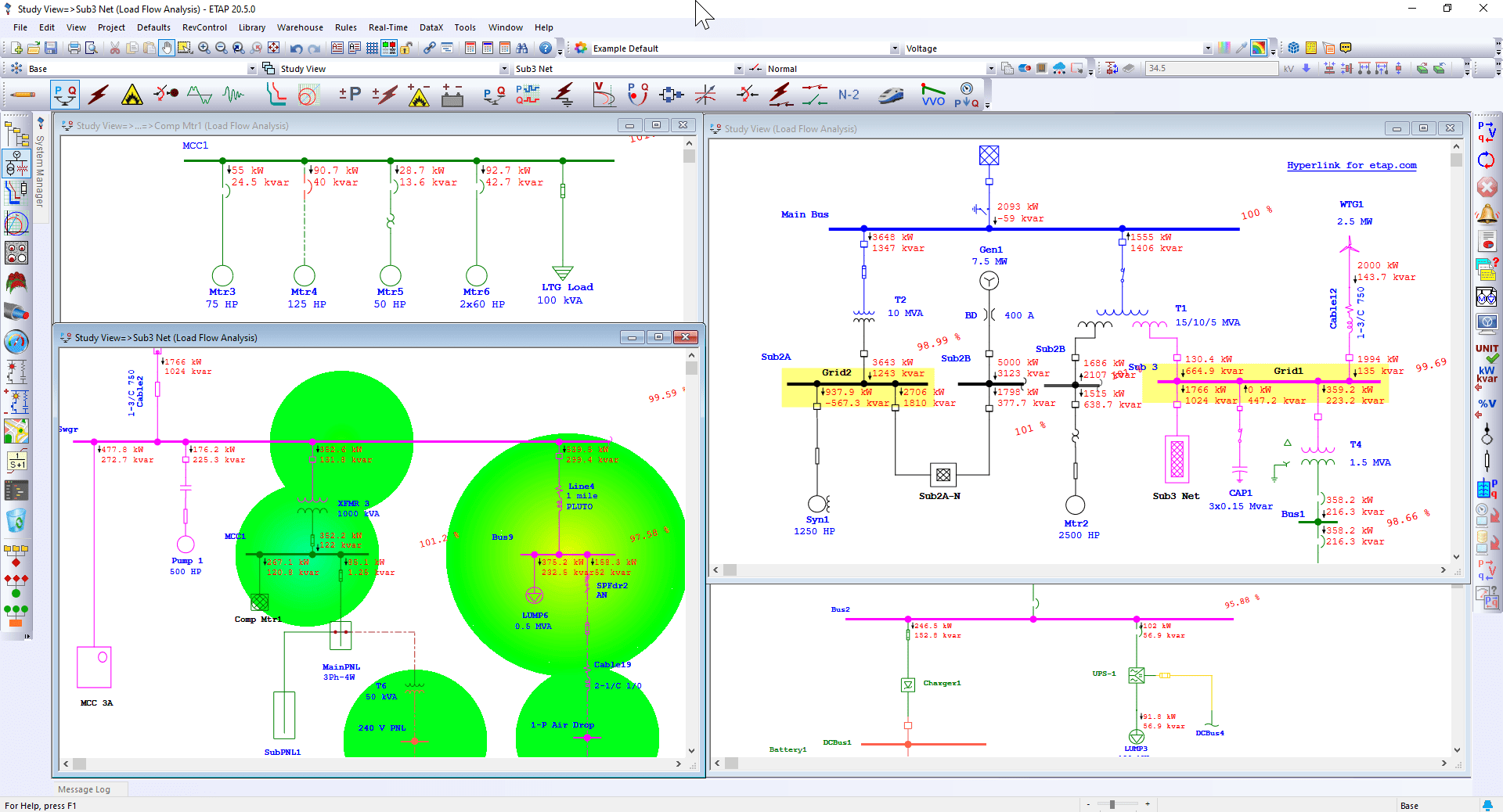 As the industry benchmark, ETAP Load Flow Software offers built-in features such as autorun load flow simulator, equipment evaluation, alerts / warnings summary reports, load flow result analyzer, and intelligent & interactive graphics, making it the best and most efficient electrical power flow analysis software available today.