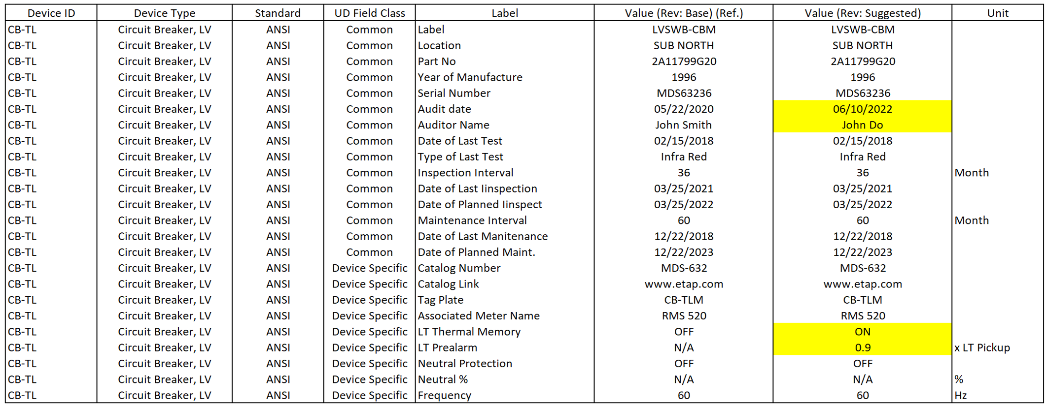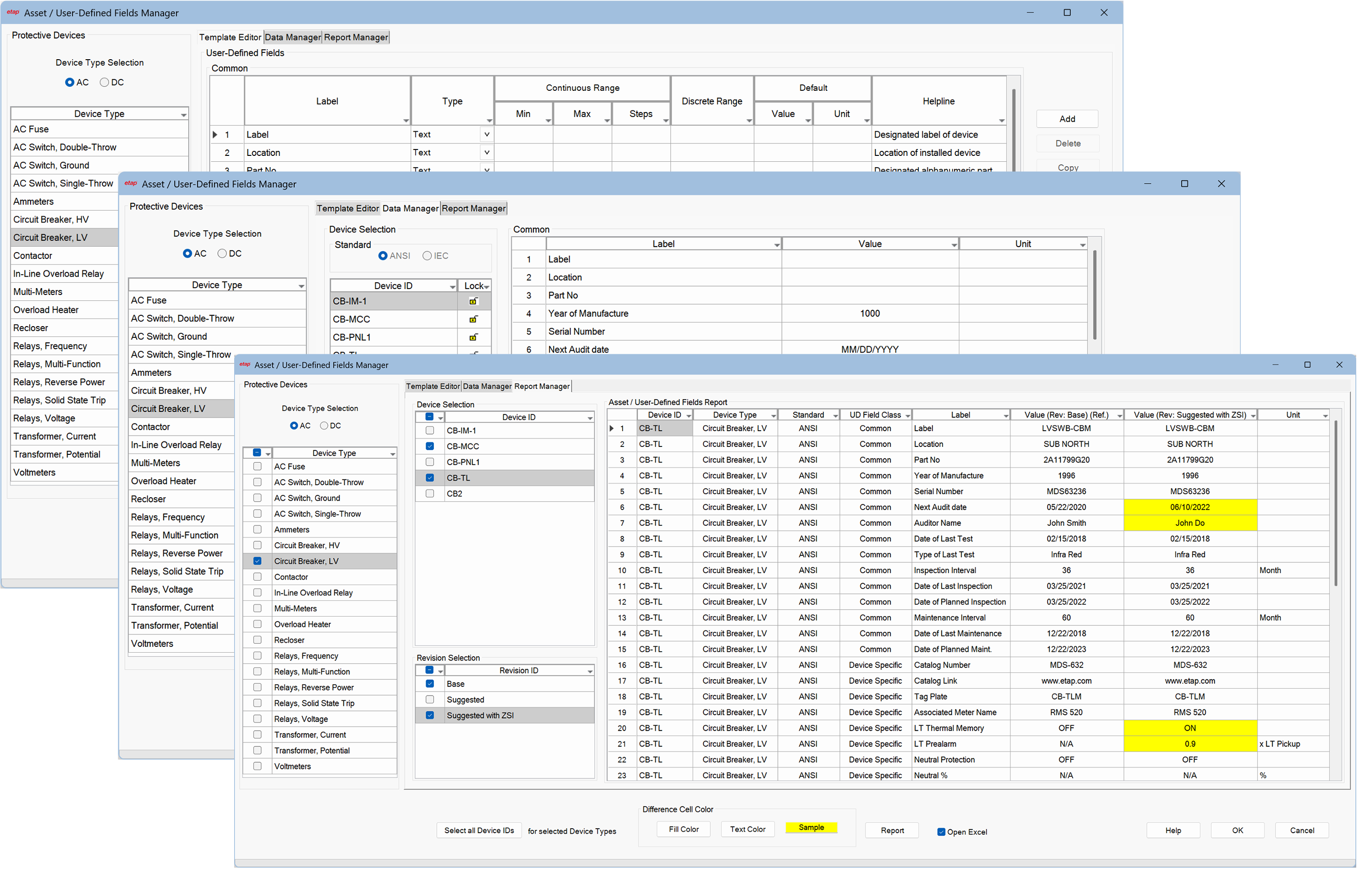 The Asset and User-Defined Fields Manager provides the ability to create user-defined fields, enter the data, prepare reports, and compare selected devices and revision data.