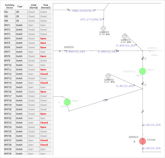 It provides optimal status of existing switching devices and suggests locations for new tie open points in the system. It can be used by the design or operation engineers to minimize system real losses and reduce or eliminate abnormal operating conditions.