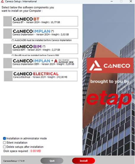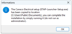 Note: In Administrator mode, the ‘Caneco Electrical’ setup will be copied locally to your computer and will not be installed automatically via the installation programme of the ‘Caneco’ offer.