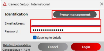 Run the Caneco installation programme (it is best to place the tool on your desktop). The experience shows that it is necessary to assign local administrator rights to the user for the duration of the installation, as described in the installation conditions.